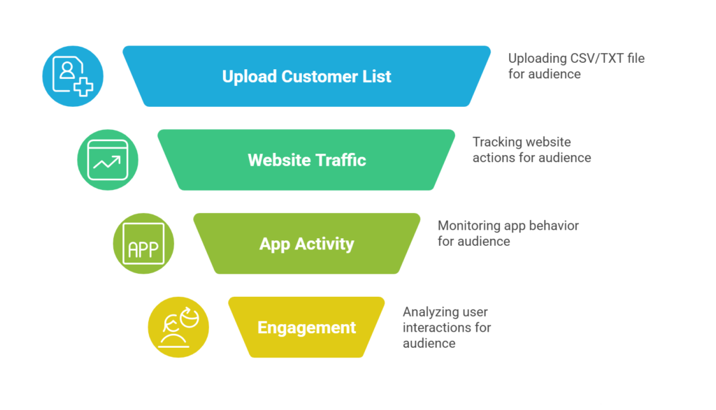 Meta offers four primary Custom Audience types. Each serves a different purpose—and combining them is where the real power lies.