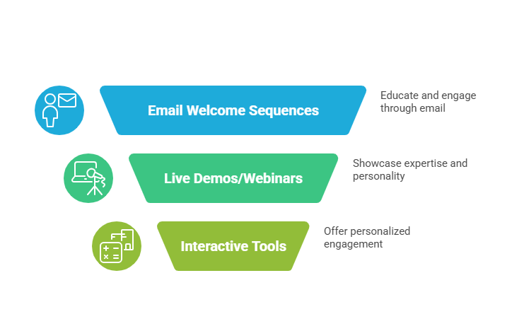 - Email Welcome Sequences: Educate first, offer later.