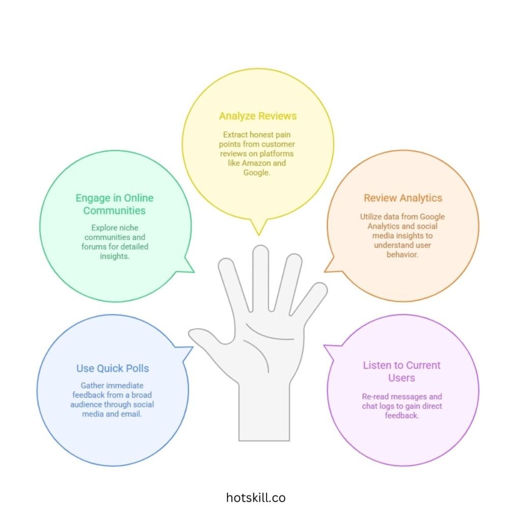 - Amazon, Google, or app reviews—goldmines of honest pain points