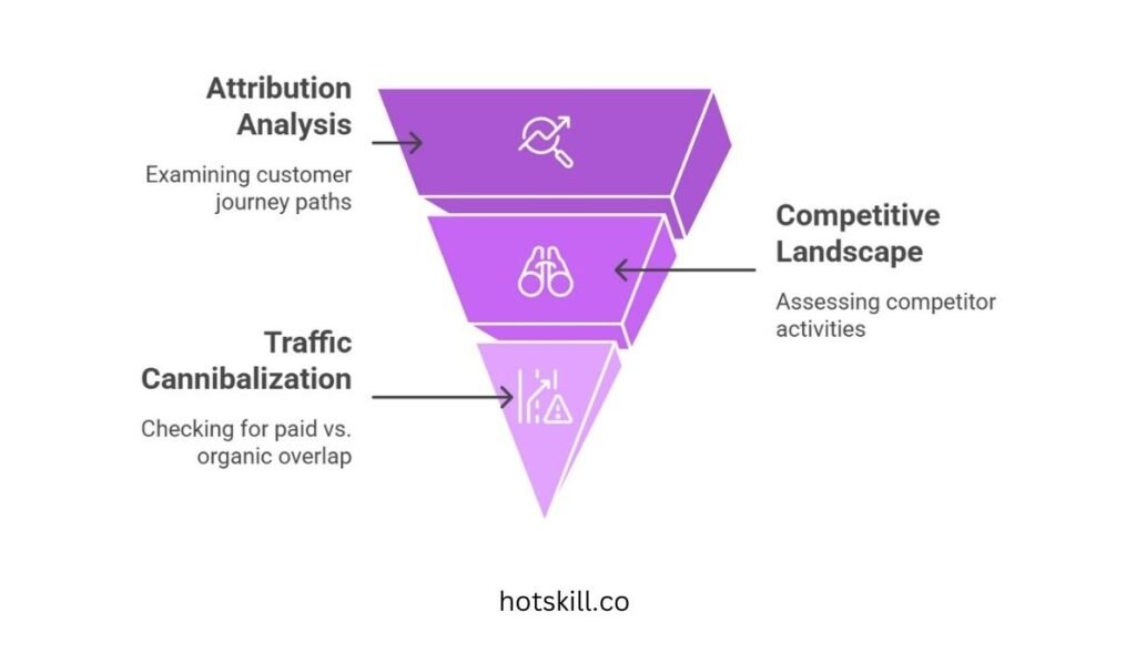 Some brands kill their own organic traffic by bidding on terms they already rank for. Check if paid cannibalized existing visits. You might be paying for what used to be free.