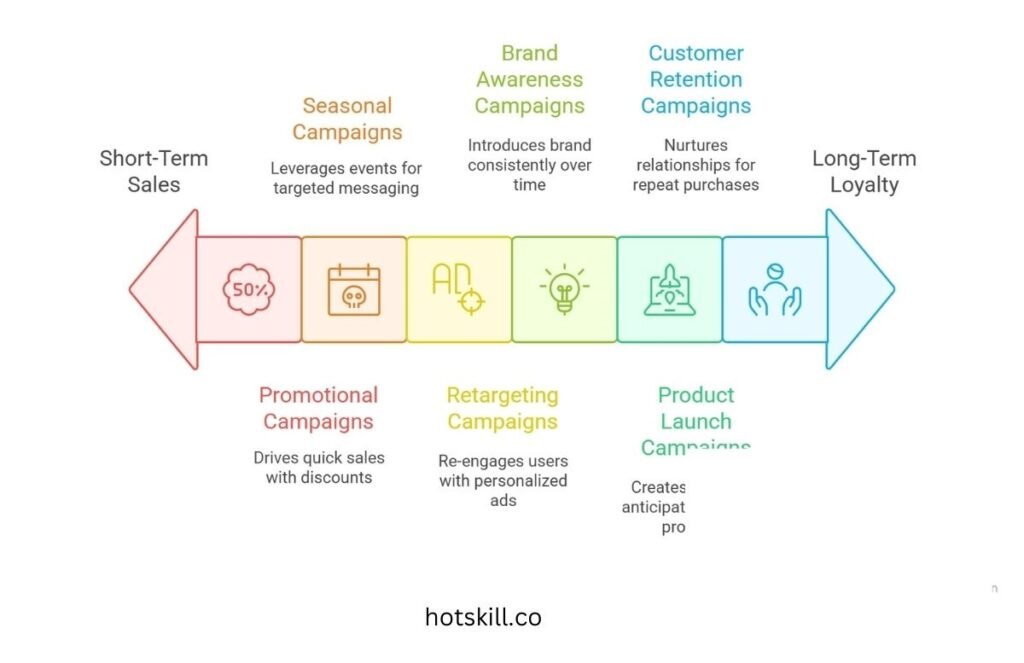 There’s no one-size-fits-all. Whether you’re making noise during a big release or keeping things bubbling quietly in the background, the campaign type matters.